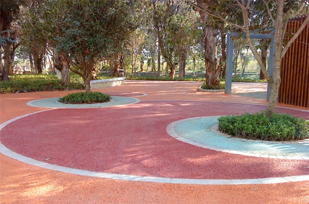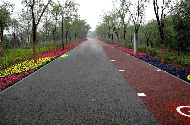 作為園林景觀的一個有機組成部分,園林鋪地彩色壓模地坪主要通過對園路、空地、廣場等進行不同形式的印象組合,貫穿游人游覽過程的始終,在營造空間的整體形象上具有極為重要的影響。鋪裝后的園林道路,在園林環境中不僅具有分割空間、組織路線和引導視線的作用,空地和廣場則為人們提供了良好的休息和活動場所,同時還直接創造出了優美的地面景觀,給人以美的享受,增強了園林藝術的效果。