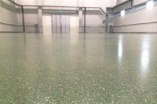 環(huán)氧彩砂地坪施工溫度應(yīng)控制在大于5℃,相對(duì)濕度應(yīng)控制在小于60%。要求混凝土的含水量應(yīng)小于8%,以保證環(huán)氧樹(shù)脂涂層與混凝土基面的結(jié)合強(qiáng)度。