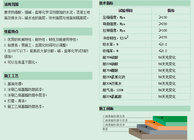 、畚邸U水處理漕、酸堿中和池,等輕微防腐地面。