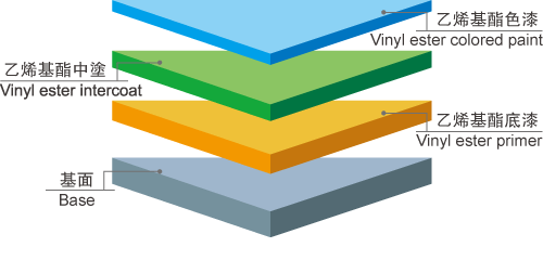 、芤蚁ブ型浚簩⒄{配好的乙烯基防腐膩子漆用鏝刀均勻涂布一至二道;(此工藝可多次貼玻纖布并批刮乙烯基防腐膩子,可分為兩布三涂、三布五涂、五布七涂等工法);