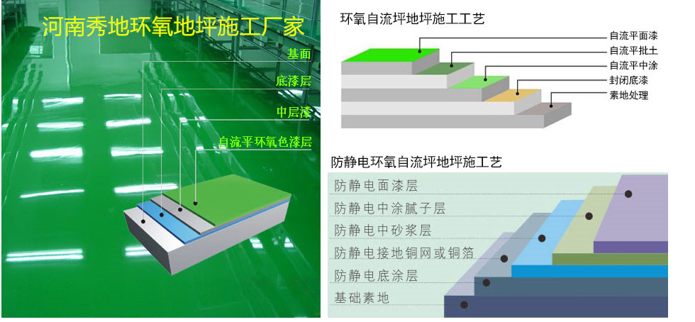 鄭州環(huán)氧樹脂防靜電自流平地坪是一種高強度、耐磨損、美觀的地板,具有無接縫、質地堅實、耐藥品性佳、防腐、防水、防塵、保養(yǎng)方便、維護費用低廉等優(yōu)點?筛鶕煌挠猛疽笤O計多種方案, 如0.5mm厚薄層涂裝、1-5mm厚的自流平地面、防滑耐磨涂裝、砂漿型涂裝、防靜電、防腐蝕涂裝等。 環(huán)氧地坪從開始時用于功能性地坪:如防腐、耐磨、防滑,發(fā)展到通用的普通工業(yè)地坪,除了具有功能性的要求,還具有裝飾性的效果。
