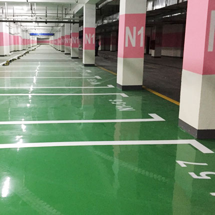 環氧地坪是用環氧樹脂為主材,固化劑、稀釋劑、溶劑、分散劑、消泡劑及某些填料等混合加工而成的環氧地坪漆,結合特定地坪施工工藝,現場地面裝飾施工而成的一類地坪。環氧地坪以涂料狀態分類有溶劑型環氧地坪、無溶劑環氧地坪和水性環氧地坪。地庫地坪施工常見的為溶劑型環氧地坪。
